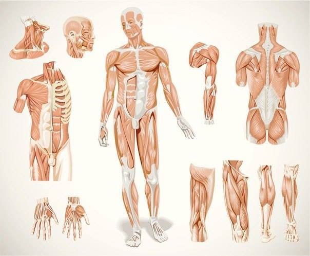 Всего в человеческом организме насчитается от 640 до 850 мышц. Во время простой ходьбы организм задействует до 200 мышц. Мышечная ткань на 15% плотнее и тяжелее жировой, поэтому тренированный человек может превосходить в весе полного, но неспортивного человека такого же роста. На мышцы приходится в среднем до 40 % массы тела.