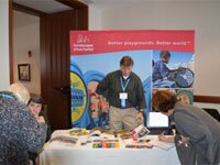 Одновременно проходила выставка-продажа разработок, используемых в сенсорной интеграции, а также представлены методы работы и специальное оборудование.
