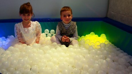 В сухом бассейне груда подсвеченных снизу пластмассовых шариков мерцает и меняет цвет. Необычные тактильные и зрительные ощущения, различные игры в бассейне способствуют психоэмоциональному развитию ребенка.